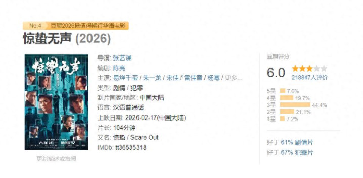 2026年春节档电影《惊蛰无声》票房可以上座率也可以,但口碑却说来话长。