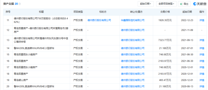 其实,除了中信公寓概括楼房产外,德州银行还曾转让其他房产。