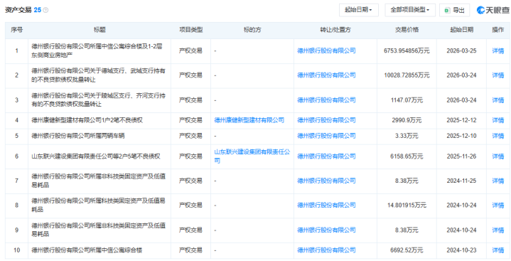 不仅房产,德州银行还打包出售不良贷款债权等钞票。天眼查分解,德州银行上月批量转让德城支行、武城支行握有的不良贷款债权和陵城区支行、皆河支行握有的不良贷款债权,leyu来回价钱永诀为1.00亿元、1147.07万元。
