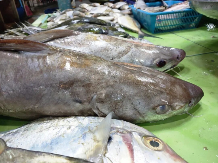 1、正名:大海鲇/Arius thalassinus,或同种异名:大头多齿海鲇/Netuma thalassina.