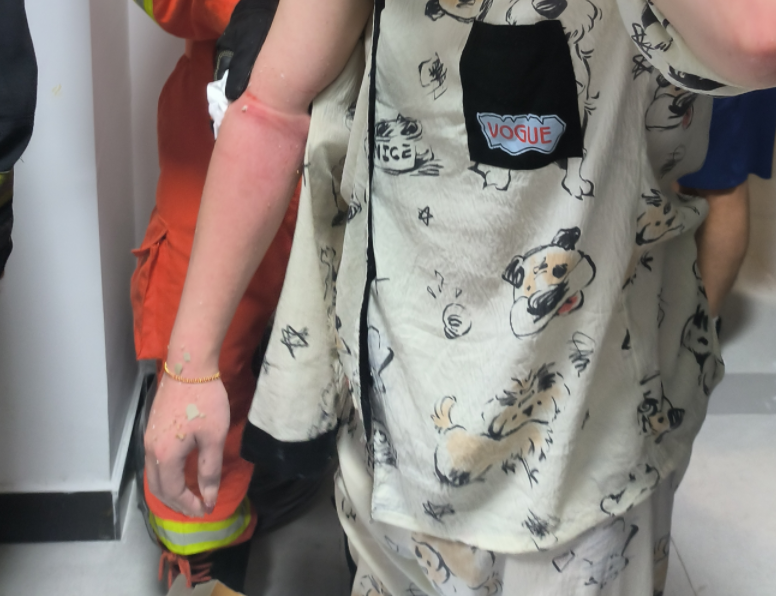 终末女子告捷出险,右臂红肿,有眇小刮伤。
