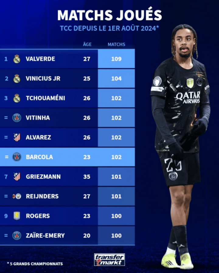 巴尔科拉(巴黎圣日耳曼):102场