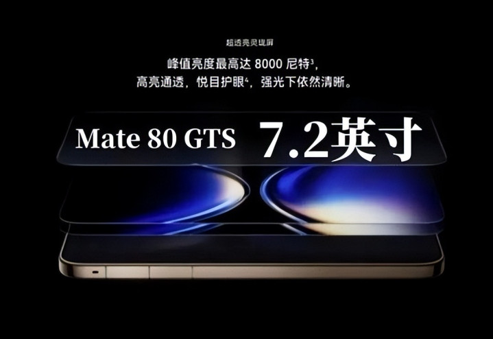 屏幕方面,诚心也拉满,正面是7.2英寸超大屏,搭载的是双层OLED超透亮灵珑屏,这款屏幕之前在Mate 80 Pro Max上就惊艳过人人,此次用到GTS上,依旧能打。
