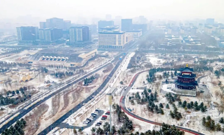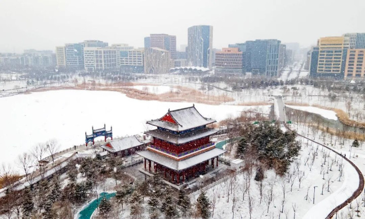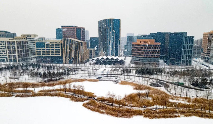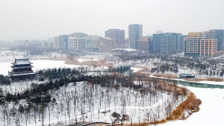一夜寒风起,琼花满淀城。2026年1月17日,雄安新区的第一场雪悄然降临,洁白的雪花将美丽的未来之城晕染成一幅诗意满满的水墨画卷。纷飞飘落的白雪为楼宇与古建披上银装,现代都市的硬朗线条被柔化,古朴亭台仿佛穿越回了水墨丹青之中。