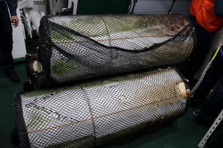 这是海警浮鹰舰执法员在中国南沙仙宾礁附近海域依法拆除的集鱼装置(1月12日摄)。新华社记者赵文轩摄