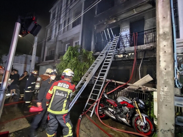 4月19日凌晨2点45分,泰国曼谷邦纳差人局接到报案,称邦纳区一处豪华住宅发生火灾,遂相关素坤逸消防解救站的考查立即赶往现场。